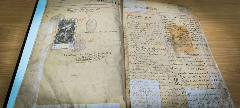 Registro de una de las primeras marcas inscritas en los tomos históricos del Registro de la Propiedad Intelectual de Guatemala